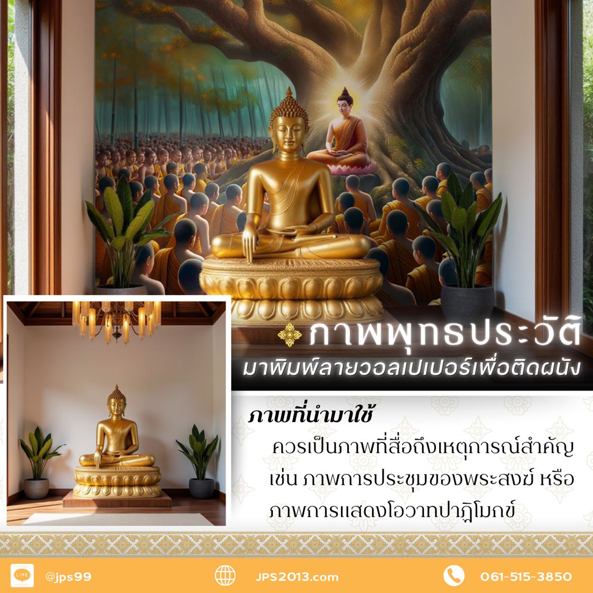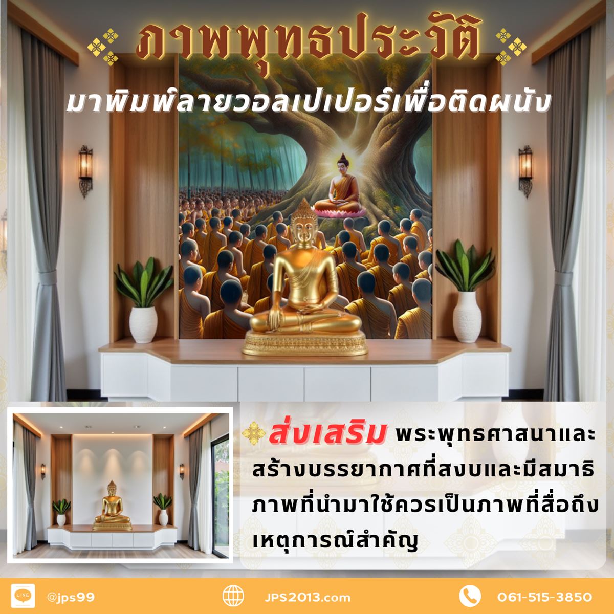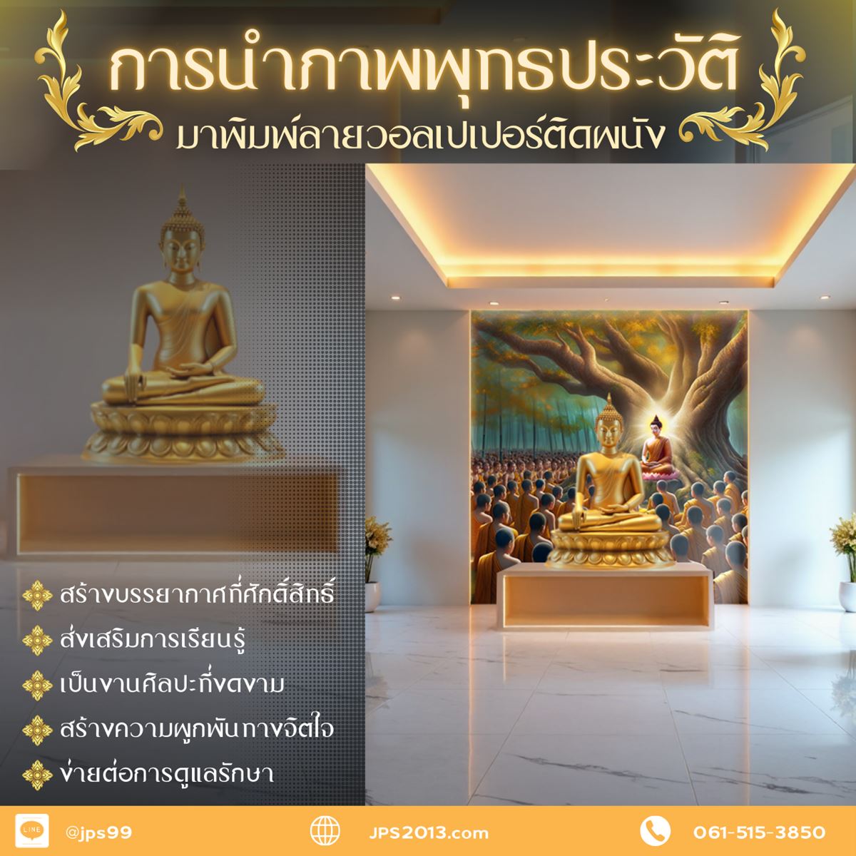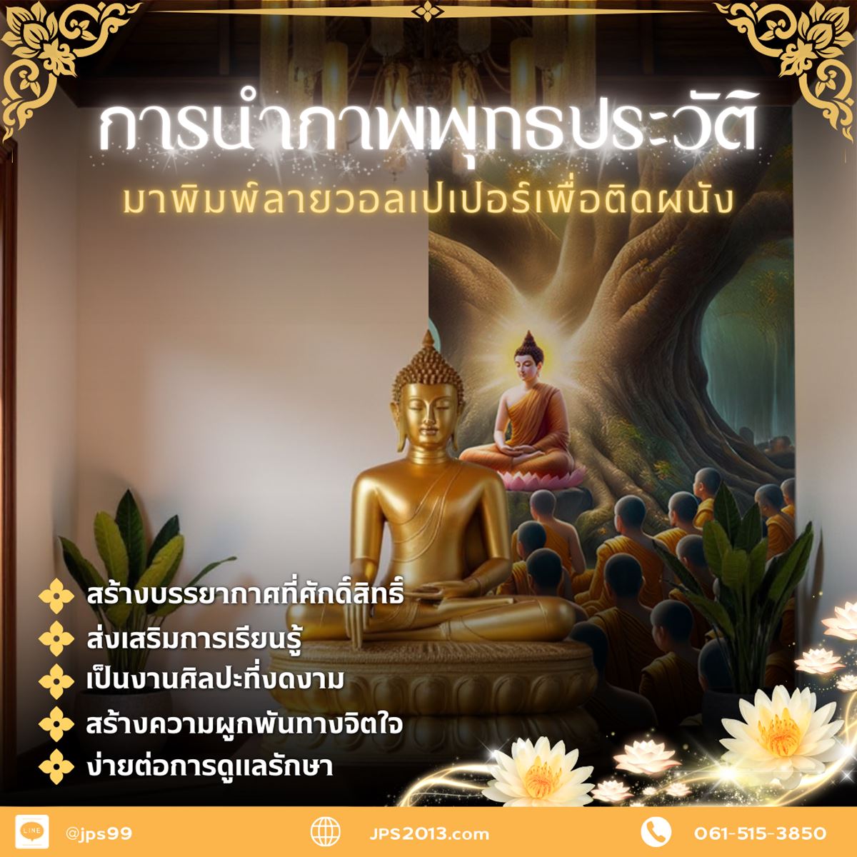 การนำภาพเหตุการณ์พุทธประวัติมาพิมพ์ลายวอลเปเปอร์เพื่อติดผนัง