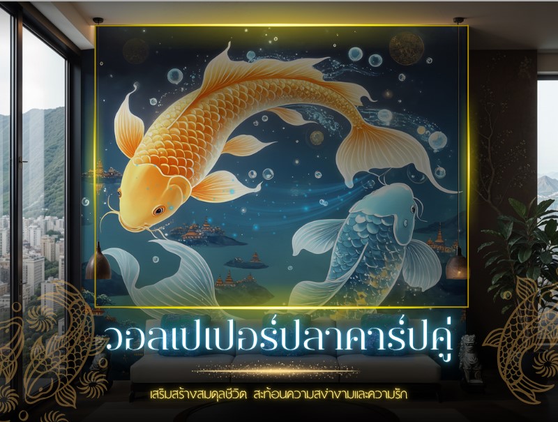 ชื่อสินค้า : วอลเปเปอร์ลายปลาคาร์ปคู่ เสริมฮวงจุ้ยด้านความรัก