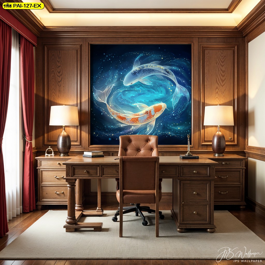 ชื่อสินค้า : วอลเปเปอร์ลายปลาคาร์ปคู่ เสริมฮวงจุ้ยด้านความรัก
