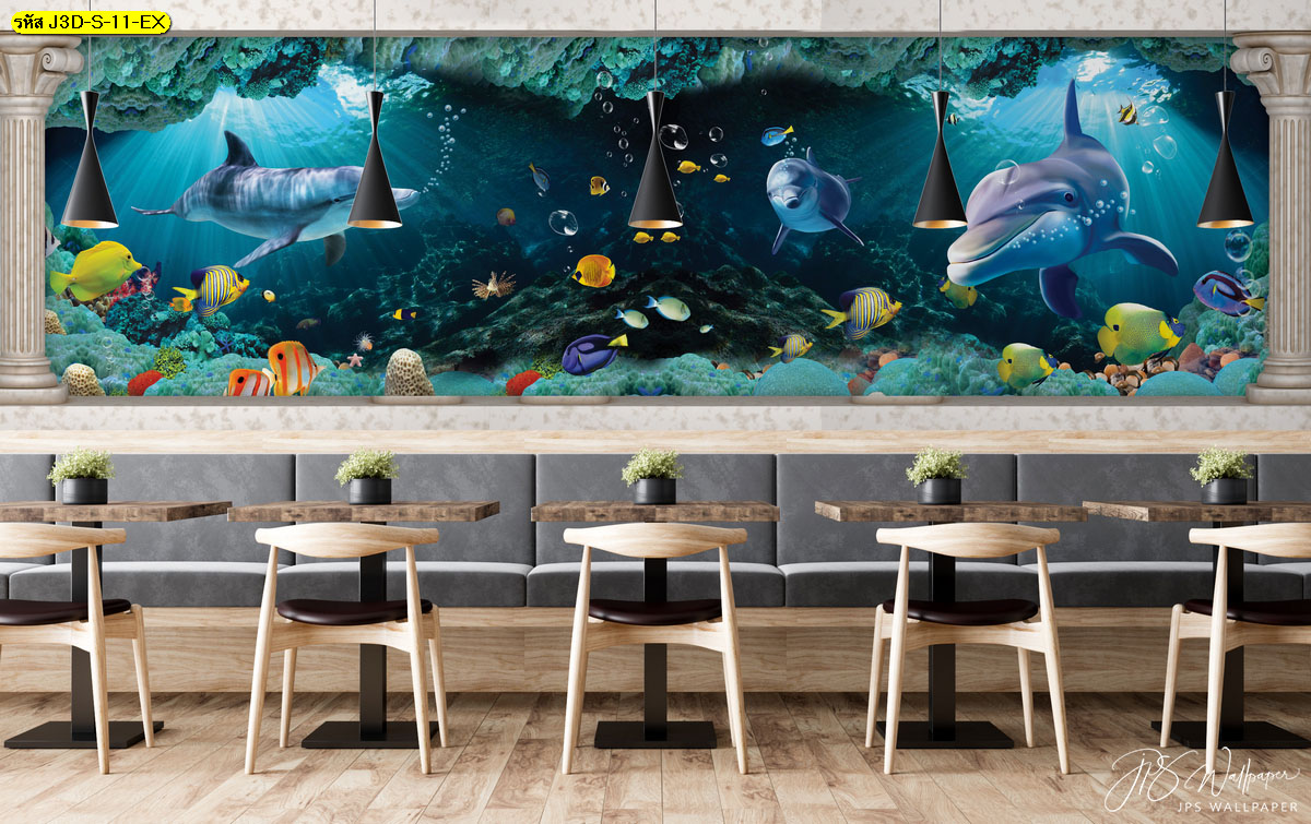ชื่อสินค้า : วอลเปเปอร์สามมิติวิวสัตว์ใต้ทะเล วิวริมทะเล