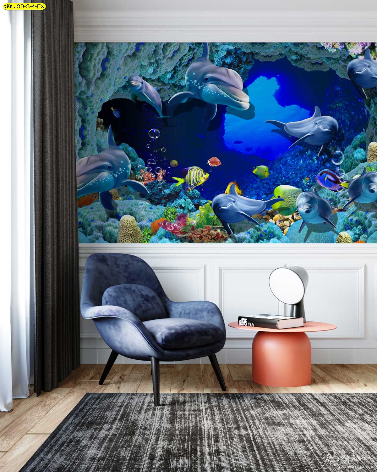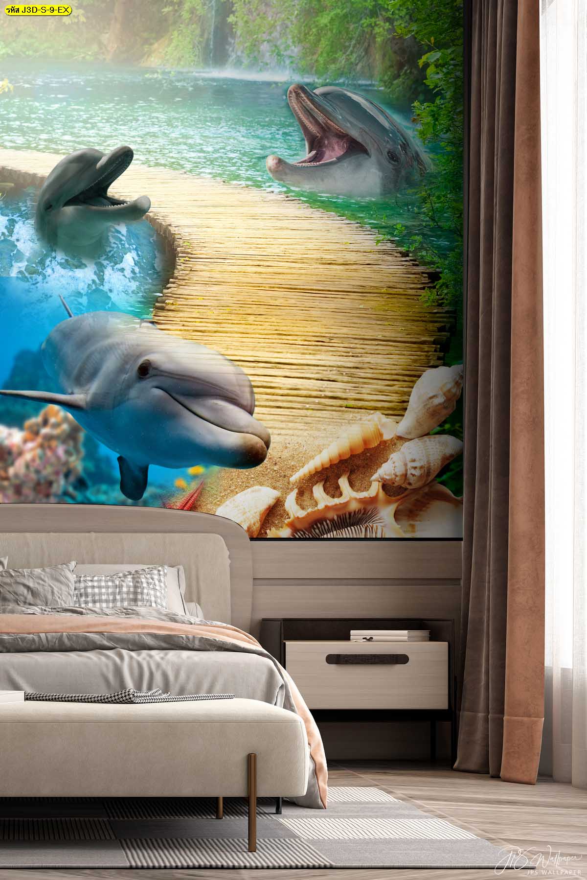 วอลเปเปอร์สามมิติลายใต้น้ำโลมาทะลุกำแพง