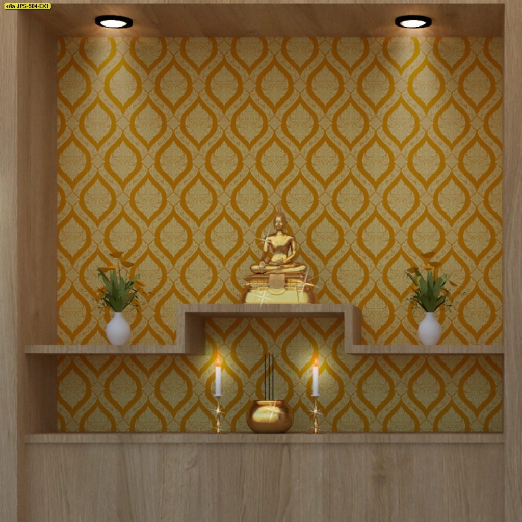 ชื่อสินค้า : วอลเปเปอร์ติดผนังลายพุ่มข้าวบิณฑ์ สีเหลือง