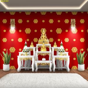 คุณสมบัติของวอลเปเปอร์ : ลายไทย ลายพุ่มข้าวบิณ มาจากความเชื่อที่ว่า ความอุดมสมบูรณ์พูนสุข การอยู่ดีกินดีและมีความสุข จึงได้นำข้าวปลาอาหารมาทำบุญตักบาตรคนละหนึ่งทัพพี จนทำให้ข้าวพูนขึ้นพ้นบาตร เป็นอีกหนึ่งลวดลายที่ได้รับความชื่นชมว่าเป็นศิลปะอันงดงาม เหมาะสำหรับติดตั้งในพระอุโบสถ ศาลา วัด หน่วยงาน และองค์สมเด็จพระสัมมาสัมพุทธเจ้า