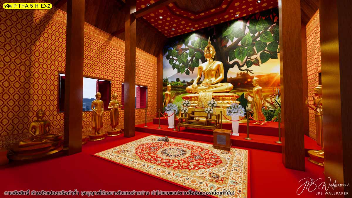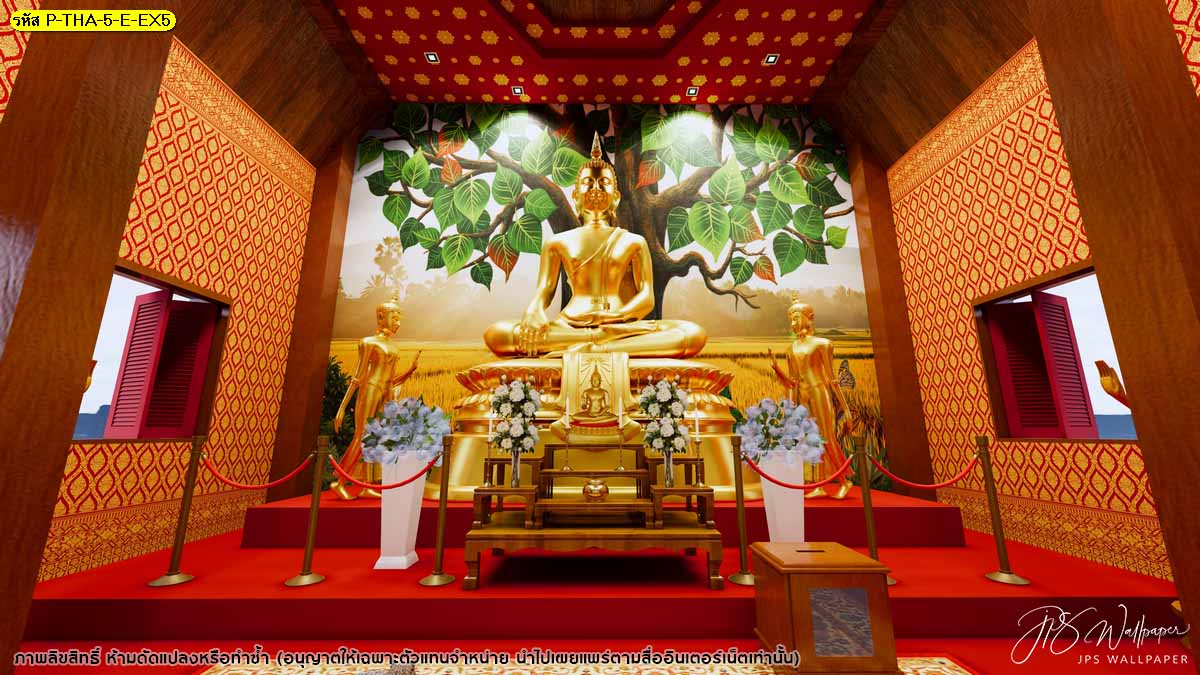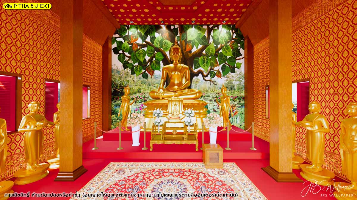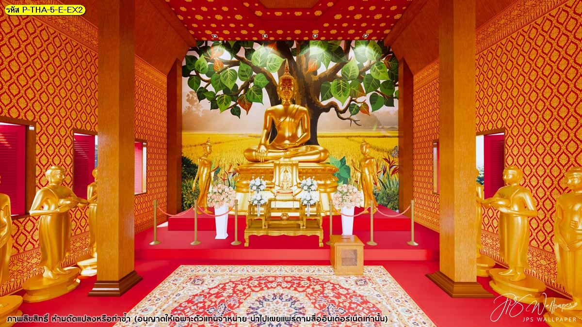 ชื่อสินค้า : วอลเปเปอร์ลายลิขสิทธิ์ ภาพลายไทยต้นโพธิ์ใหญ่หลังพระประธาน