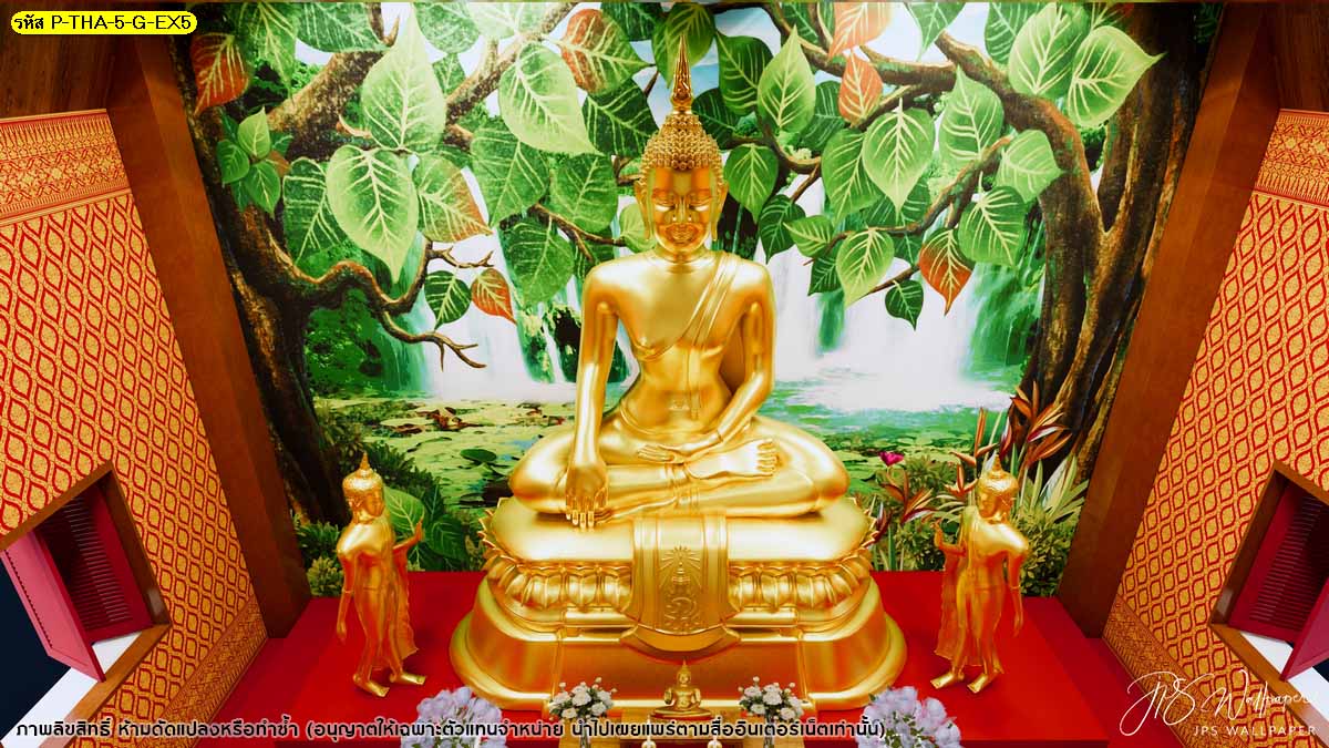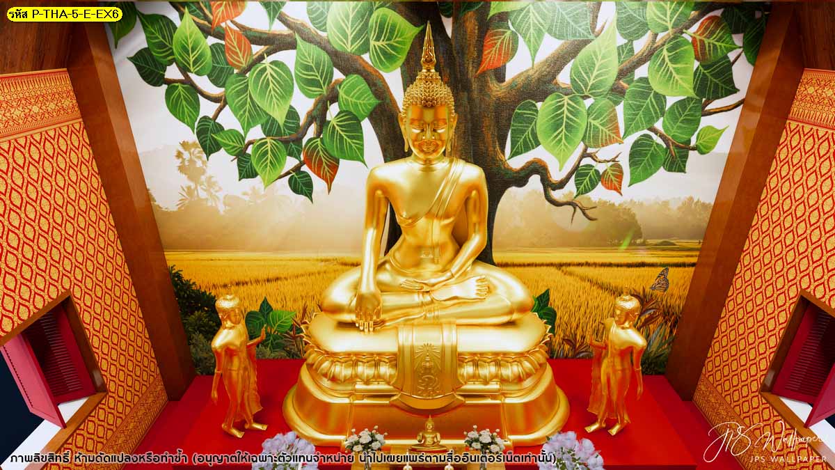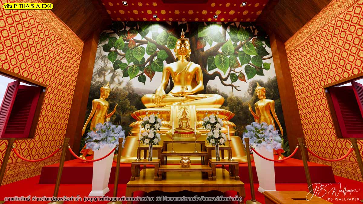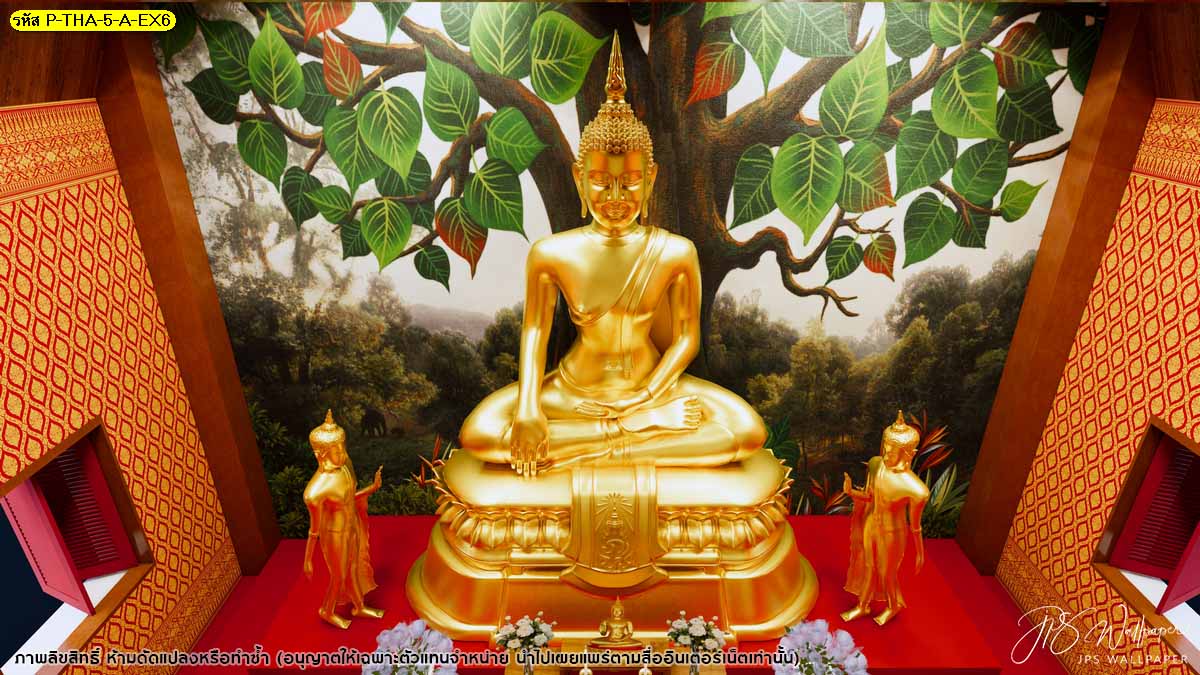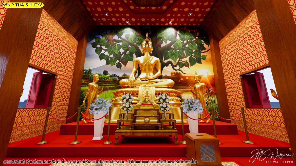 ชื่อสินค้า : วอลเปเปอร์ลายลิขสิทธิ์ ภาพลายไทยต้นโพธิ์ใหญ่หลังพระประธาน