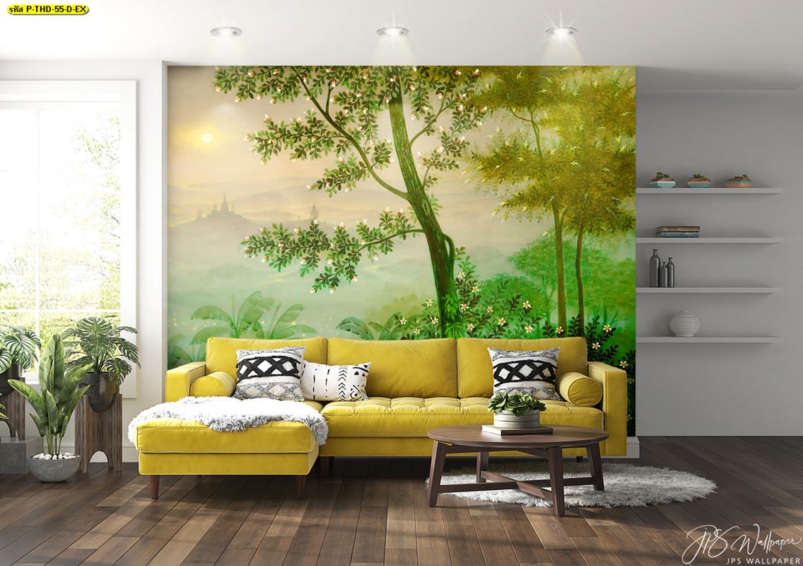 ภาพลายสวนป่าโทนเหลืองสามารถตกแต่งเป็นห้องพระได้ตามใจชอบ