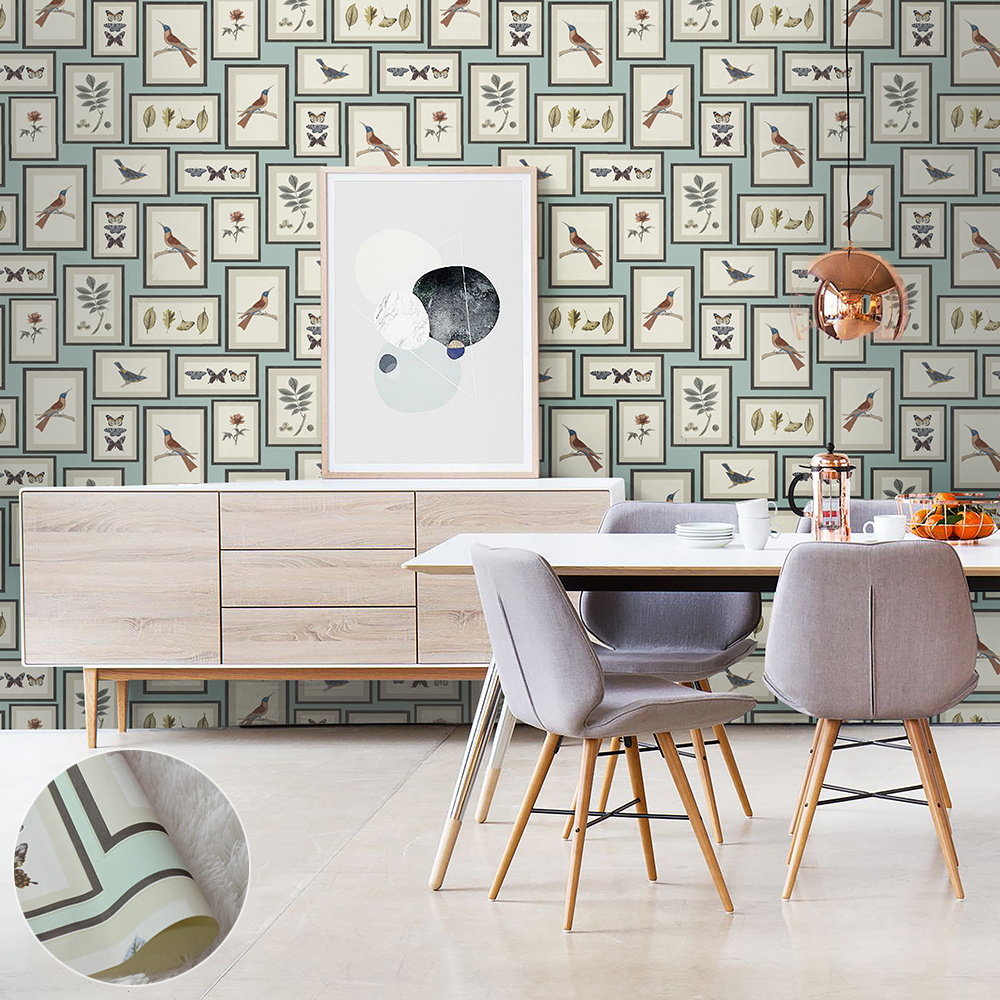ชื่อสินค้า : วอลเปเปอร์ติดผนัง ลายกรอบรูป พื้นสีเขียว