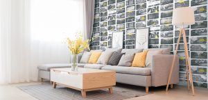 ชื่อสินค้า : วอลเปเปอร์ติดผนัง ลายกรอบรูป พื้นสีแดง