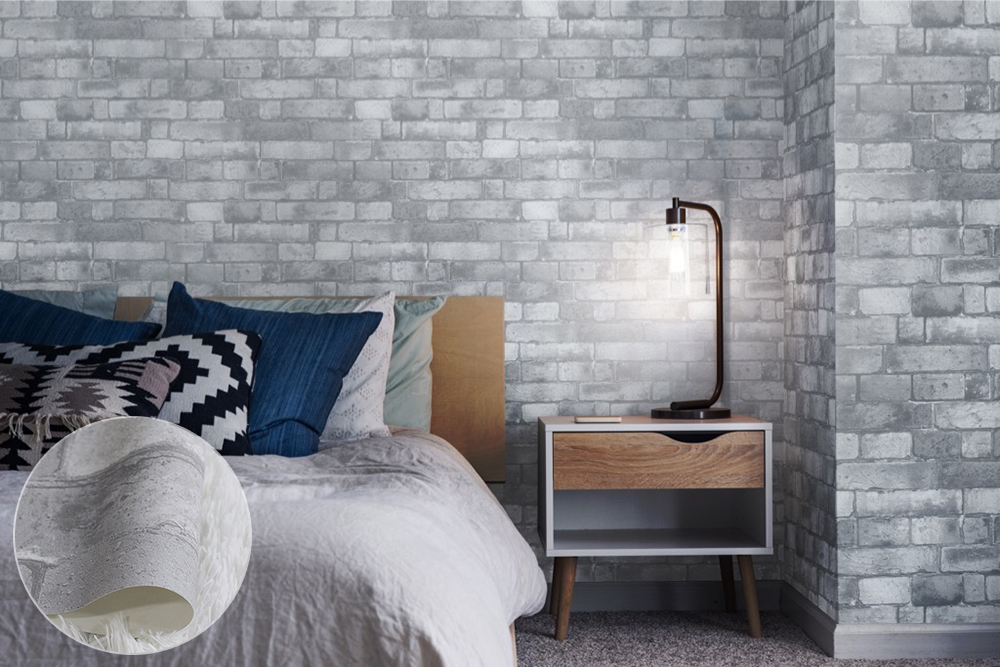 คุณสมบัติของวอลเปเปอร์ : ปรับเปลี่ยนผนังภายในห้อง พื้นเรียบธรรมดาๆ ให้กลายเป็นผนังห้องที่มีสีสัน และบ่งบอกสไตล์เท่ห์ๆ ที่ดูแปลกใหม่ทันสมัย ด้วยวอลเปเปอร์ติดผนังลวดลายอิฐ สีเทา ตกแต่งได้ทั้งห้องนอน ห้องนั่งเล่น ตกแต่งร้านกาแฟ สร้างบรรยากาศให้ดูอบอุ่น