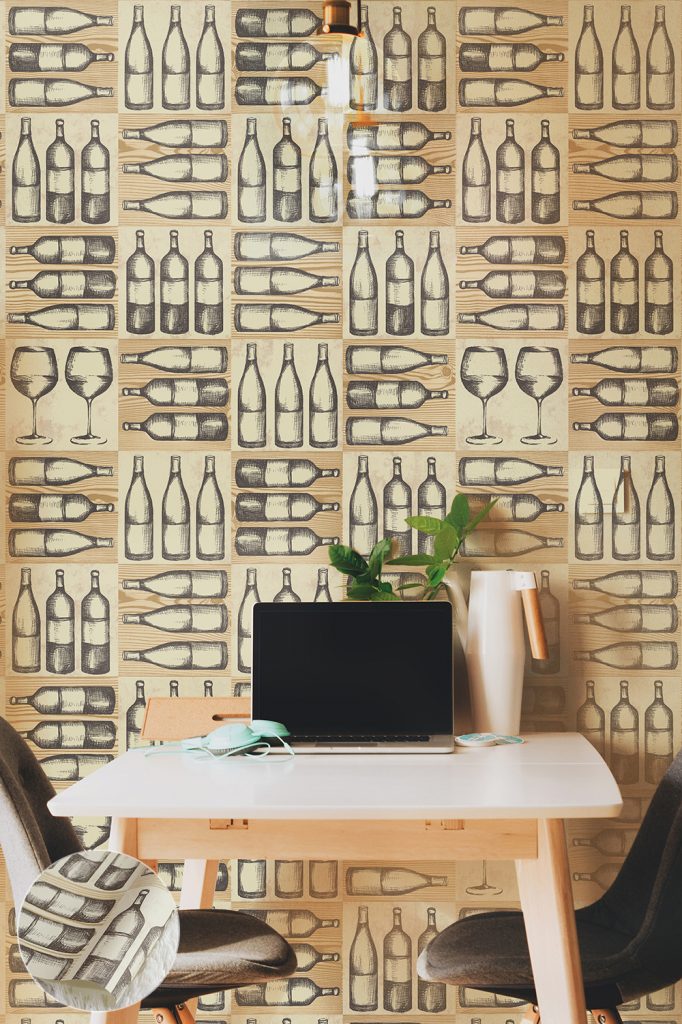 ชื่อสินค้า : วอลเปเปอร์ติดผนัง ลายขวดน้ำดื่มเครื่องดื่ม สีน้ำตาลครีม