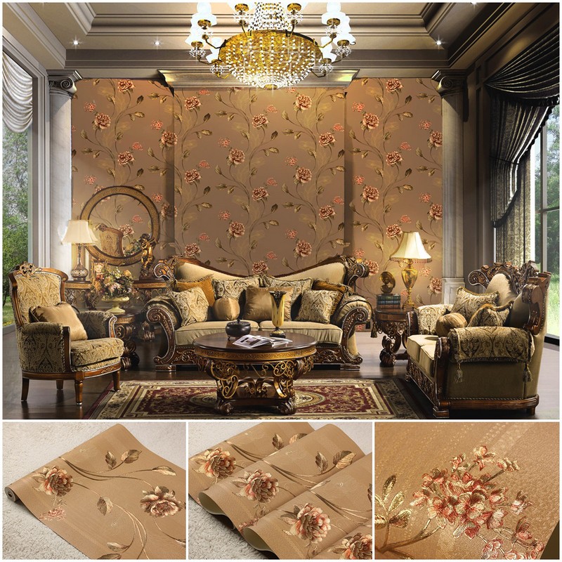 ชื่อสินค้า : วอลเปเปอร์ติดผนังลายดอกกุหลาบ สีน้ำตาลทอง