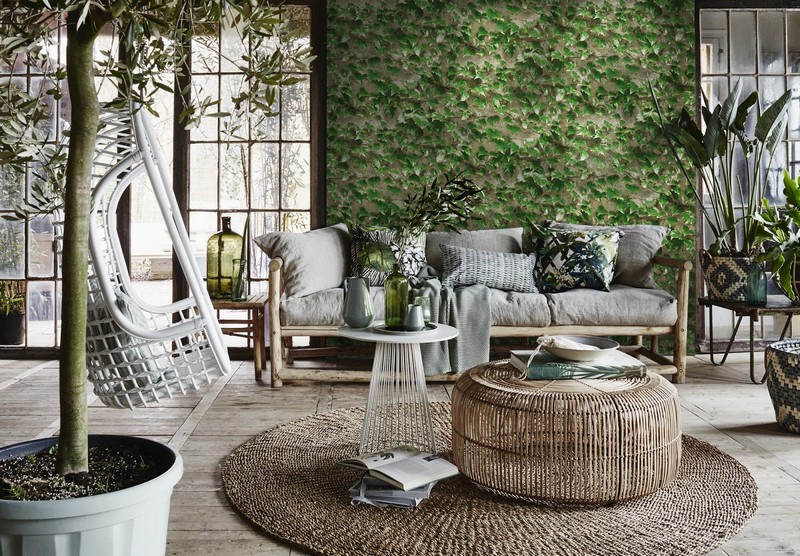 คุณสมบัติของวอลเปเปอร์ : วอลเปเปอร์ลวดลายใบไม้ สีเขียวในรูปแบบธรรมชาติ ที่เลื้อยไปมาบนปูนเปลือย สีเทา ตกแต่งผนังภายในห้องต่างๆ ช่วยเพิ่มกลิ่นอายความเป็นธรรมชาติ แต่งแต้มสีสันสดใส ลวดลายเสมือนจริง คล้ายกับว่าตกแต่งภายในบ้านด้วยใบไม้นาๆชนิด เพิ่มสีสันมิติใหม่ให้ห้องดูแปลกตายิ่งขึ้น อีกทั้งวอลเปเปอร์เช็ดถูทำความสะอาดได้ง่าย วัสดุผลิตจากไวนิลคุณภาพดี