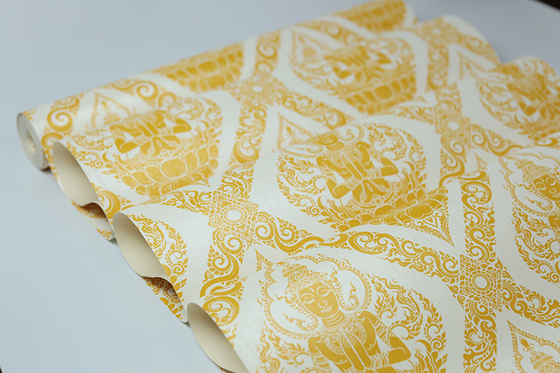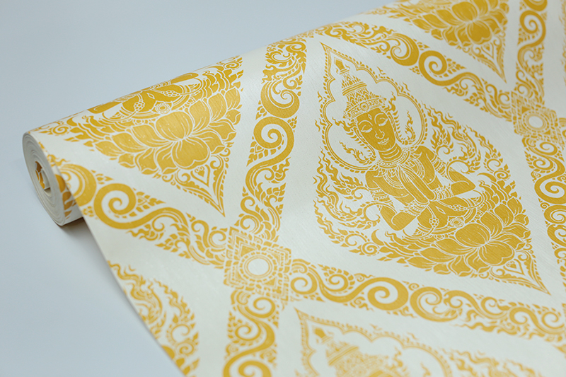 ชื่อสินค้า : วอลเปเปอร์ติดผนังลายไทยเทพพนม สีทองพื้นขาว