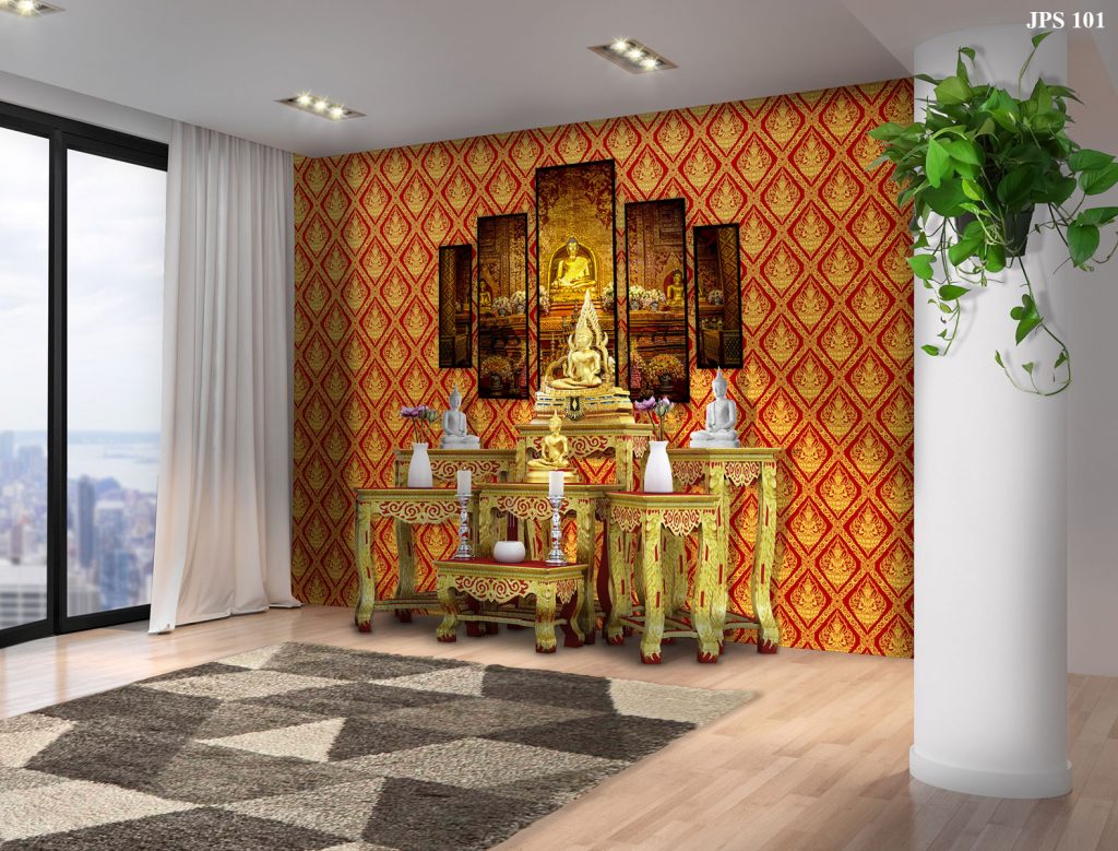 คุณสมบัติของวอลเปเปอร์ : วอลเปเปอร์ลวดลายไทยเป็นอีกหนึ่งลวดลายที่หลายคนรู้จักเป็นอย่างดี เหมาะสำหรับติดตั้งในพระอุโบสถ ศาลา วัด หน่วยงาน และองค์สมเด็จพระสัมมาสัมพุทธเจ้า เพื่อเพิ่มความสวยงามและโดดเด่น ลักษณะเด่นของลวดลาย คือ เทวดาพนมมือ เป็นอีกหนึ่งจุดกำเนิดของความคิดที่ว่าคนเราคิดดีพูดดี เหล่าเทวดาจะมาสาธุ วอลเปเปอร์ลายไทยจึงได้รับความนิยมมากเช่นกัน