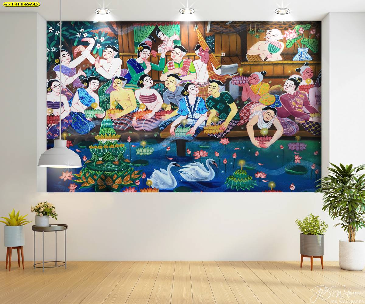ตกแต่งผนังด้วยวอลเปเปอร์จิตรกรรมลายไทยนิยมในเทศกาลลอยกระทง