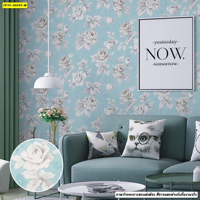 ชื่อสินค้า : วอลเปเปอร์ติดผนังลายกุหลาบฟ้า