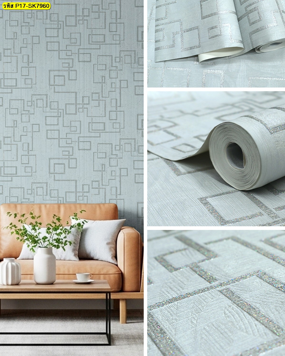 ชื่อสินค้า : วอลเปเปอร์ติดผนังลายกราฟิกสีฟ้าอ่อน