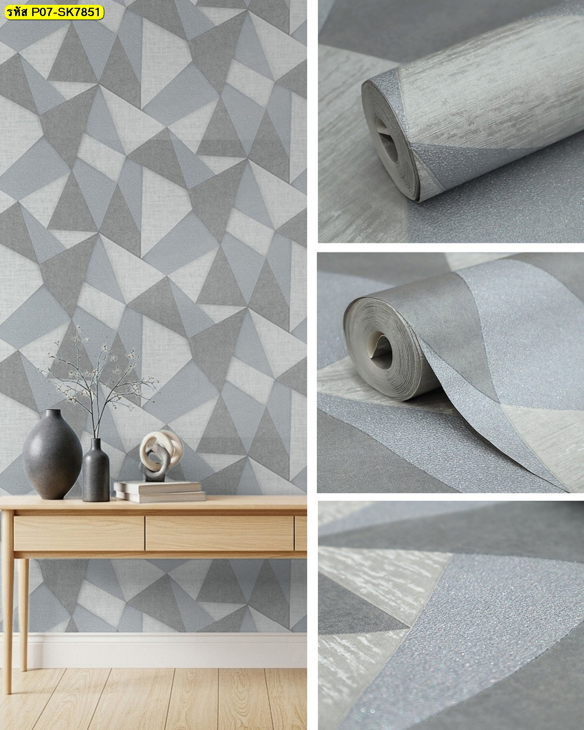 วอลเปเปอร์ติดผนังลายกราฟิกสีเทาสลับฟ้าอ่อน รหัส P07-SK7851