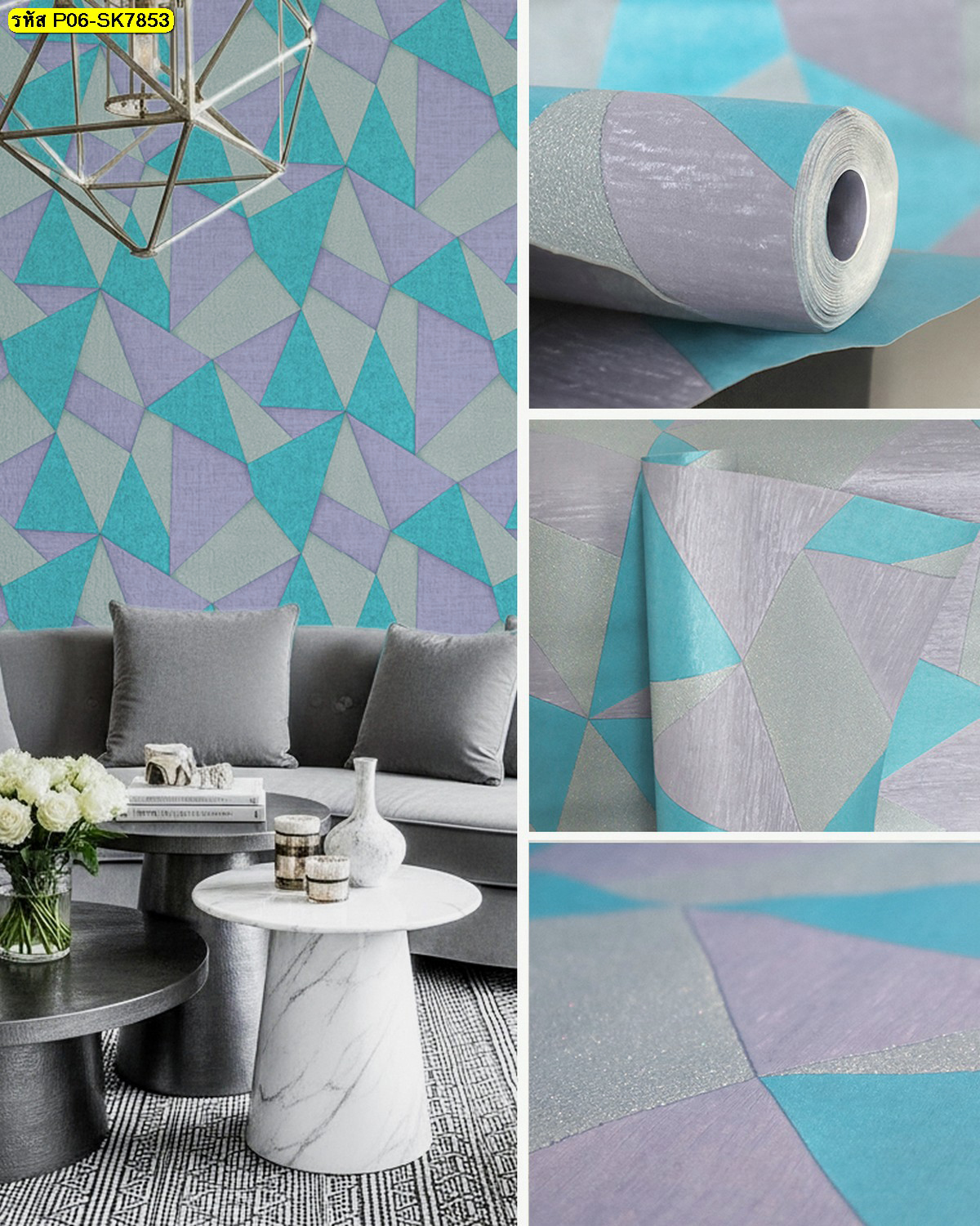 ชื่อสินค้า : วอลเปเปอร์ติดผนังลายกราฟิกสีม่วงสลับฟ้า