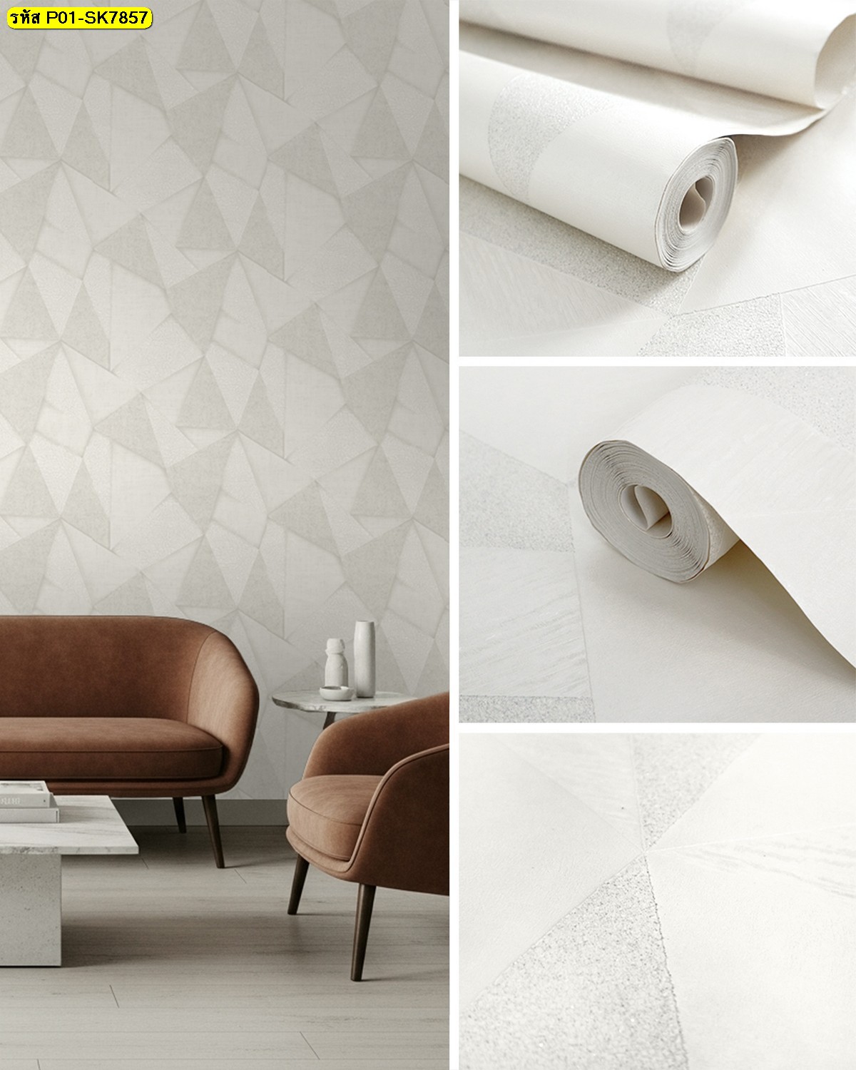วอลเปเปอร์ติดผนังลายกราฟิกสีครีมสลับเทา รหัส P01-SK7857