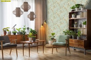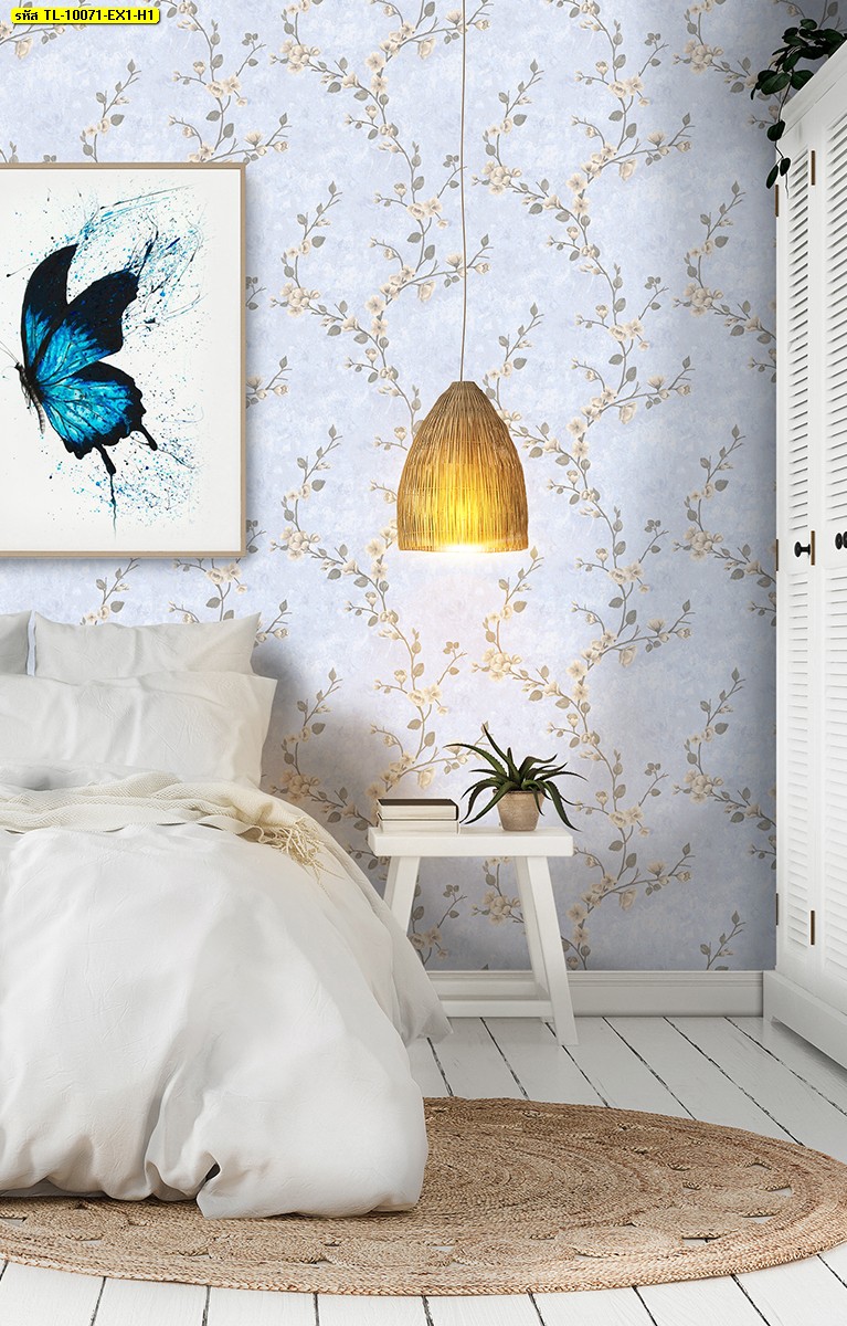 ชื่อสินค้า : วอลเปเปอร์ติดผนังลายดอกไม้สีฟ้า