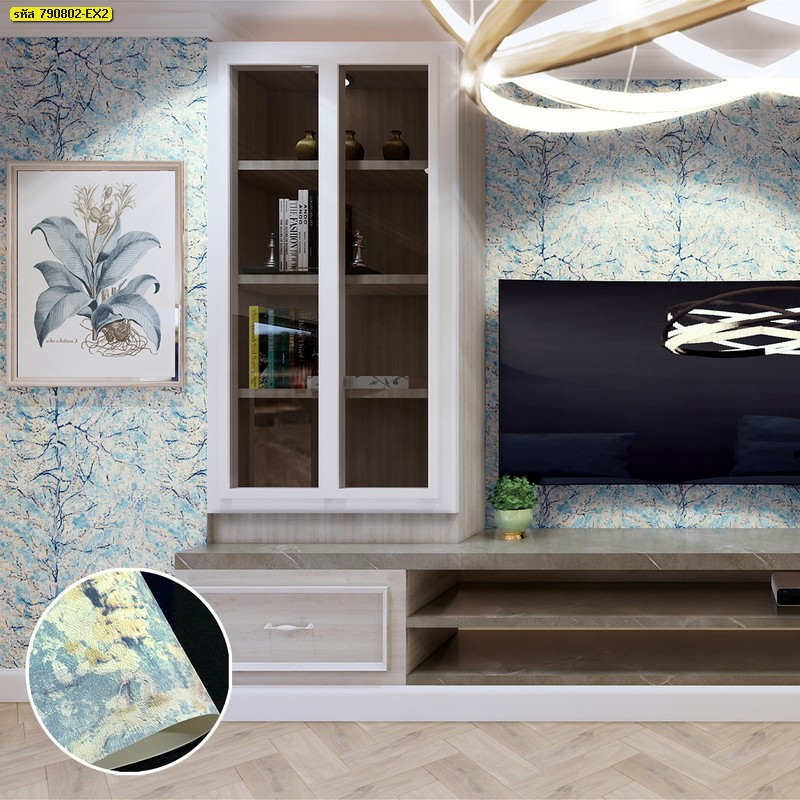 ชื่อสินค้า : วอลเปเปอร์ติดผนังลายศิลปะสีฟ้าเหลือง