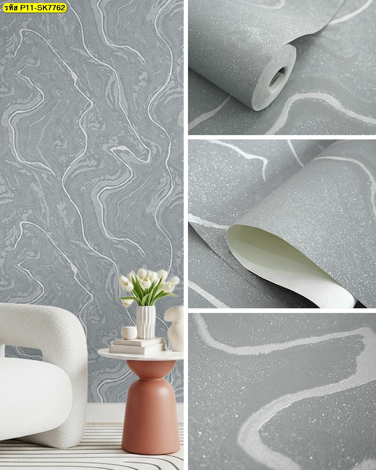 ชื่อสินค้า : วอลเปเปอร์ติดผนังลายหินอ่อนสีเทาเข้ม