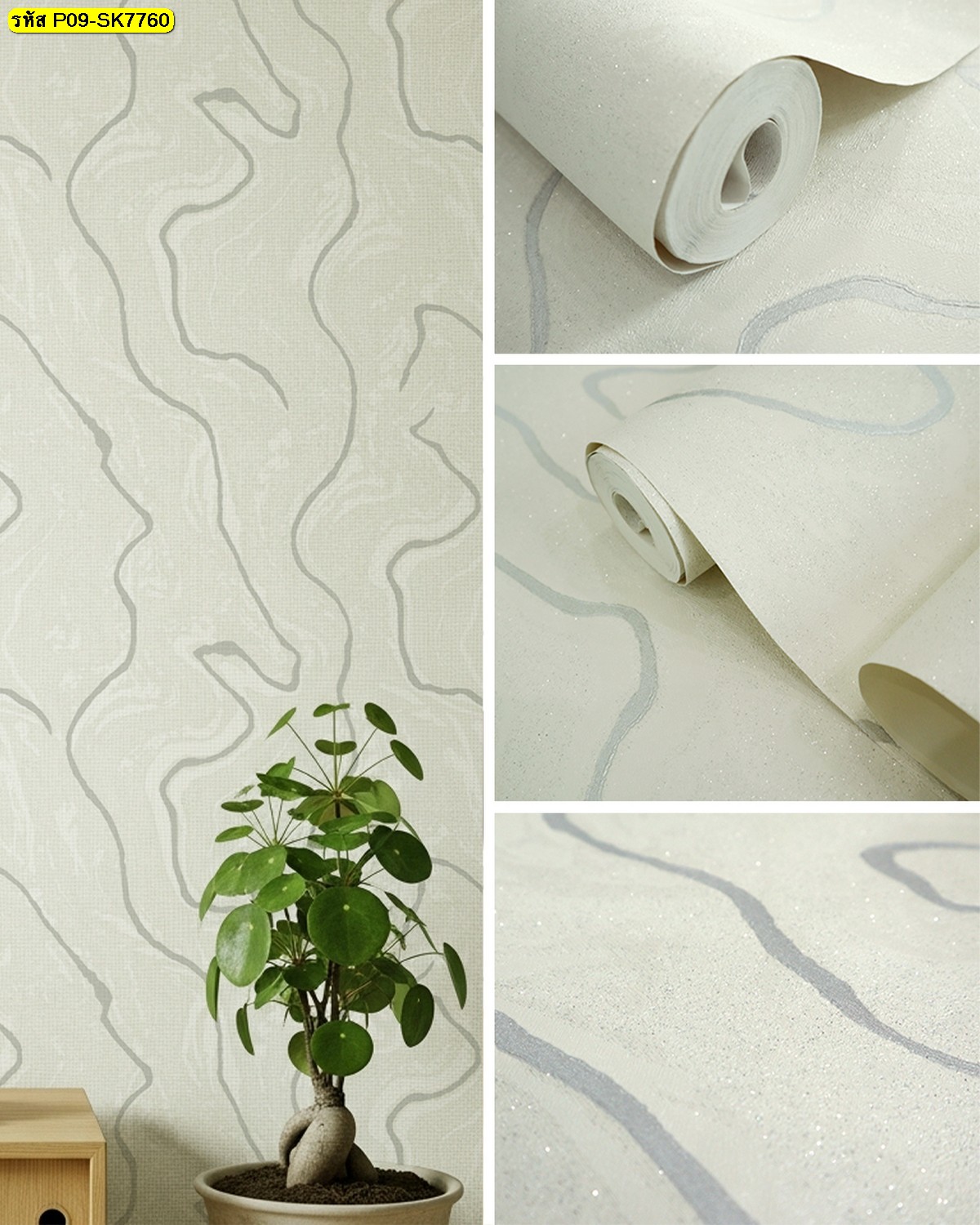 ชื่อสินค้า : วอลเปเปอร์ติดผนังลายหินอ่อนสีครีม