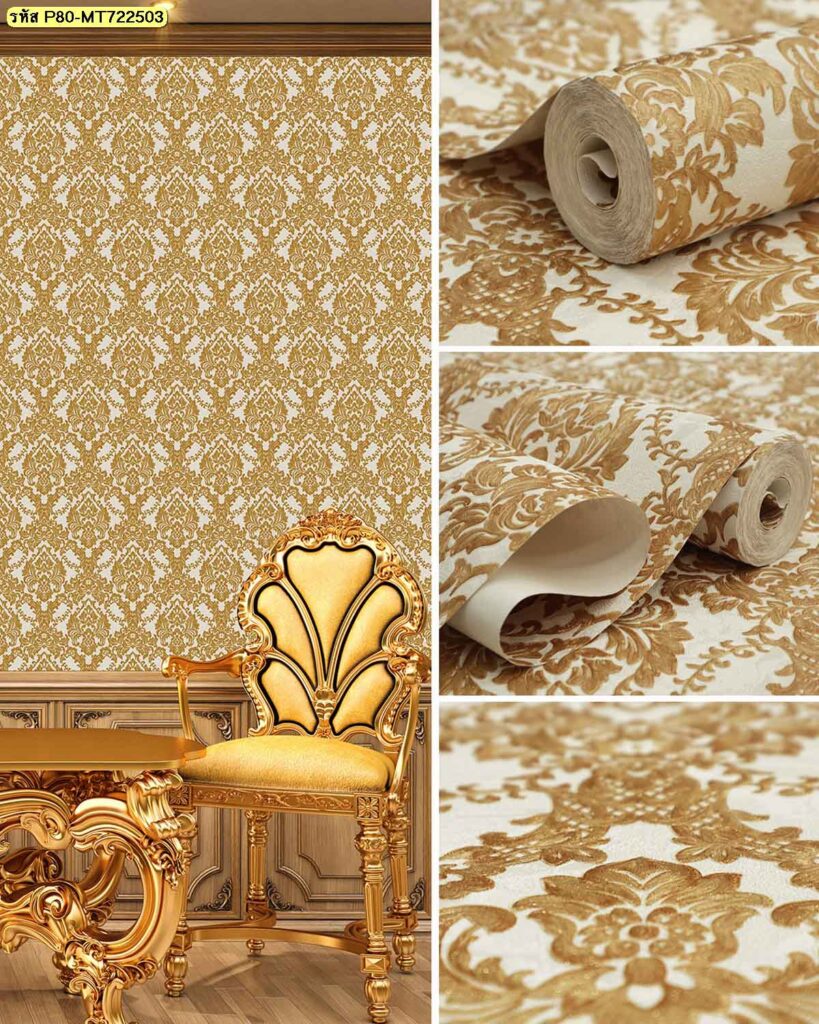 วอลเปเปอร์ติดผนังลายหลุยส์สีทองพื้นครีม รหัส P80-MT722503