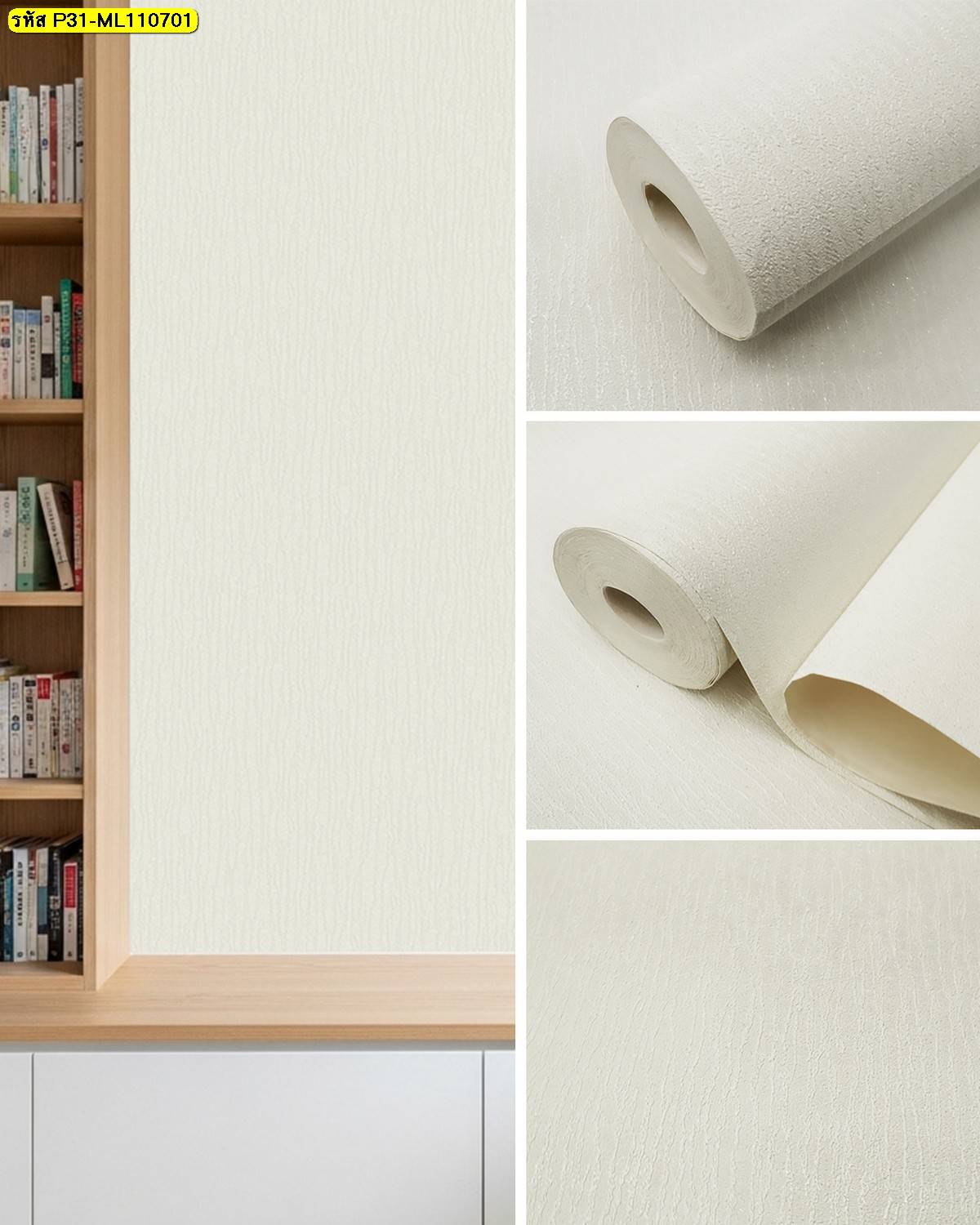 ชื่อสินค้า : วอลเปเปอร์ติดผนังลายเปลือกไม้สีขาว