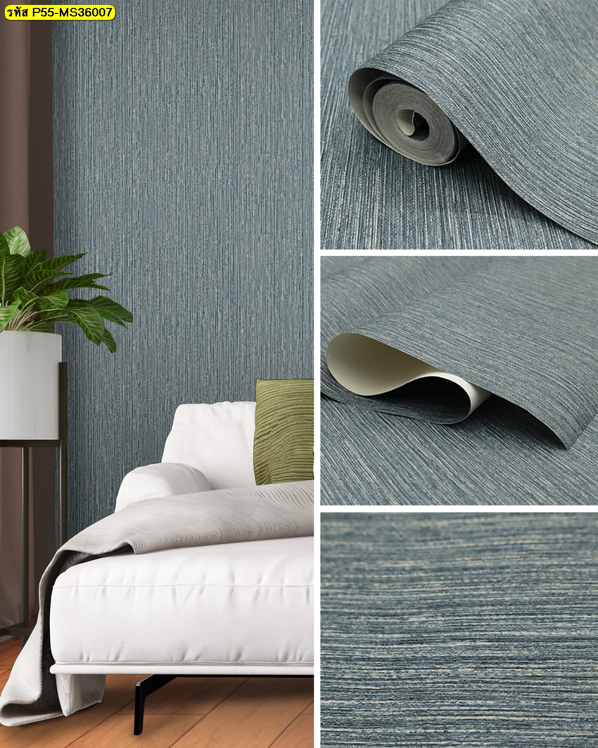 ชื่อสินค้า : วอลเปเปอร์ติดผนังลายเรียบสีน้ำเงิน