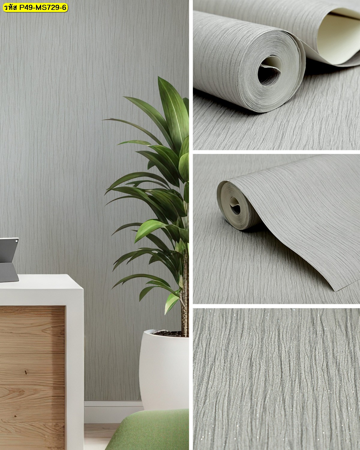 ชื่อสินค้า : วอลเปเปอร์ติดผนังลายเรียบสีเทา