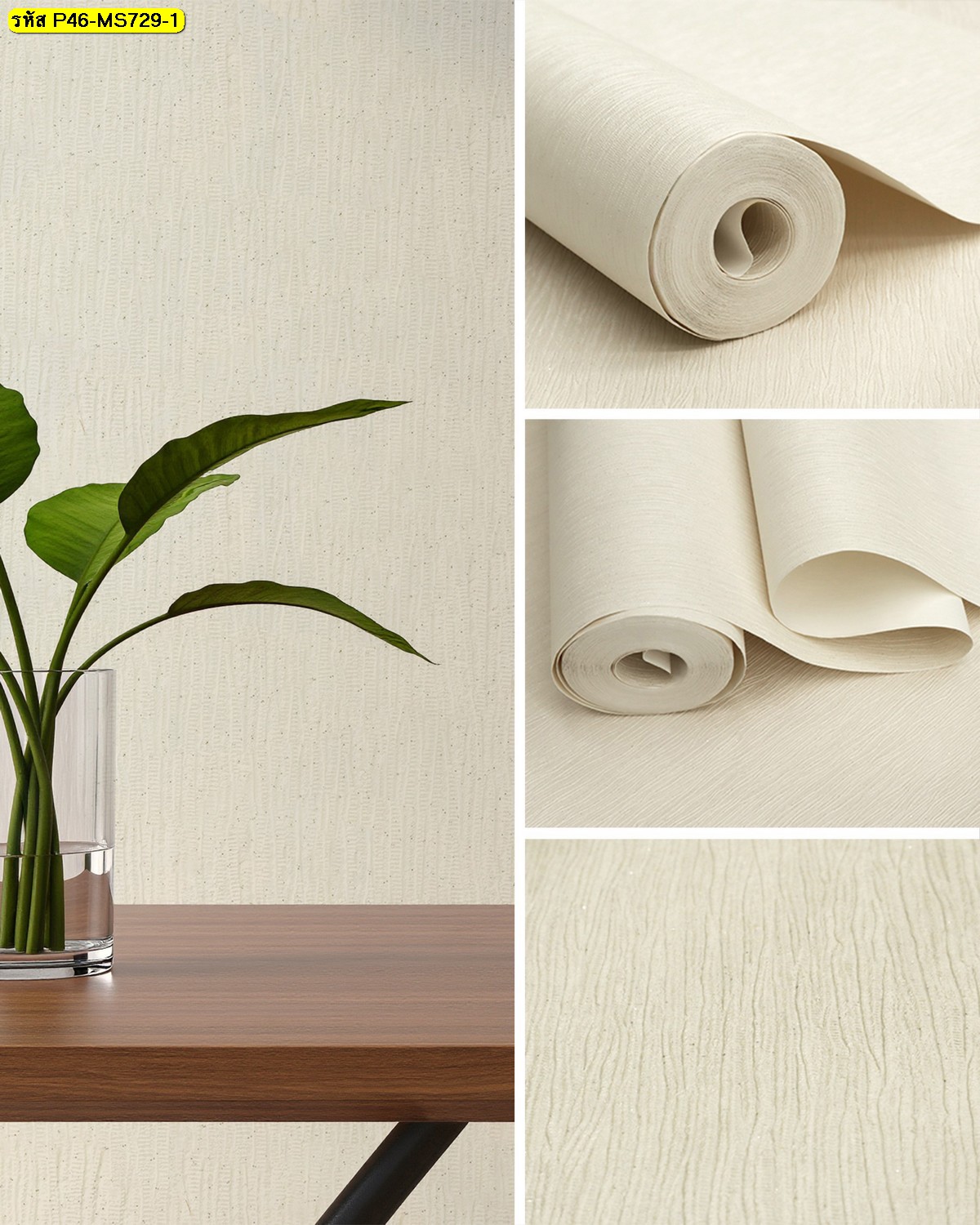 ชื่อสินค้า : วอลเปเปอร์ติดผนังลายเรียบสีครีม