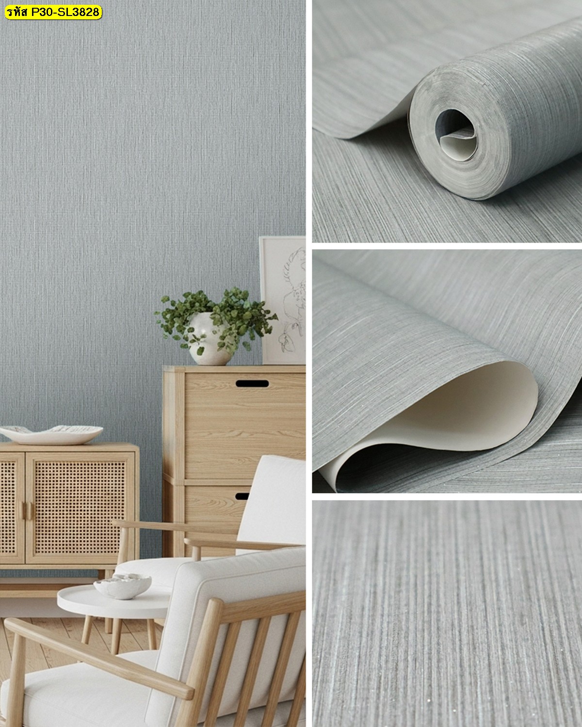 ชื่อสินค้า : วอลเปเปอร์ติดผนังลายเรียบสีเทา