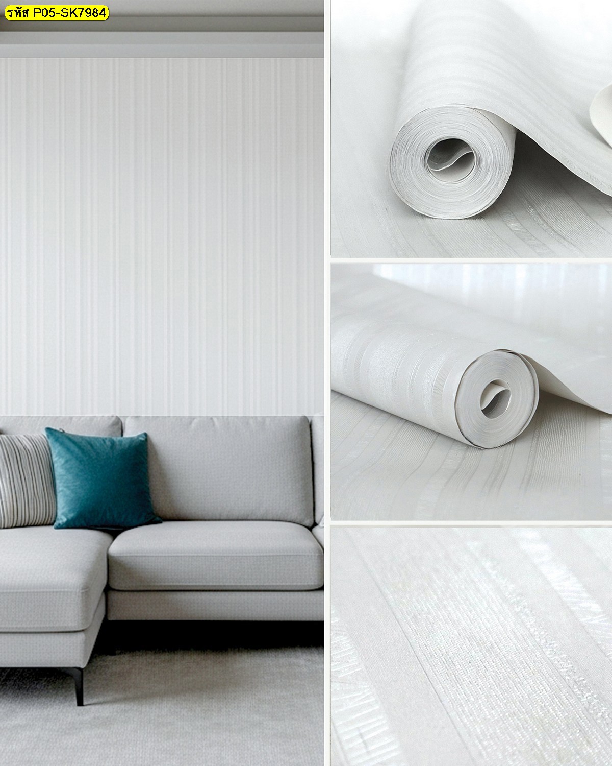 ขนาด : กว้าง 0.53 x ยาว 10 เมตร = 5 ตารางเมตร/ม้วน