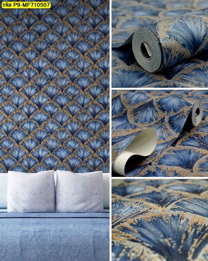 ชื่อสินค้า : วอลเปเปอร์ติดผนังลายใบไม้สีน้ำเงิน