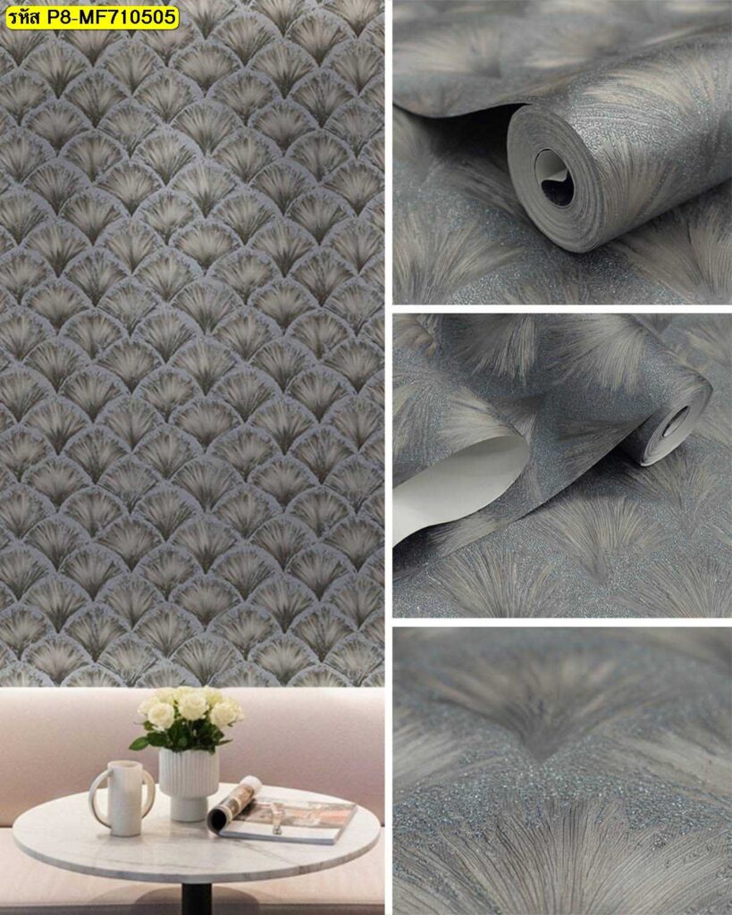 วอลเปเปอร์ติดผนังลายใบไม้สีเทาเข้ม รหัส P8-MF710505