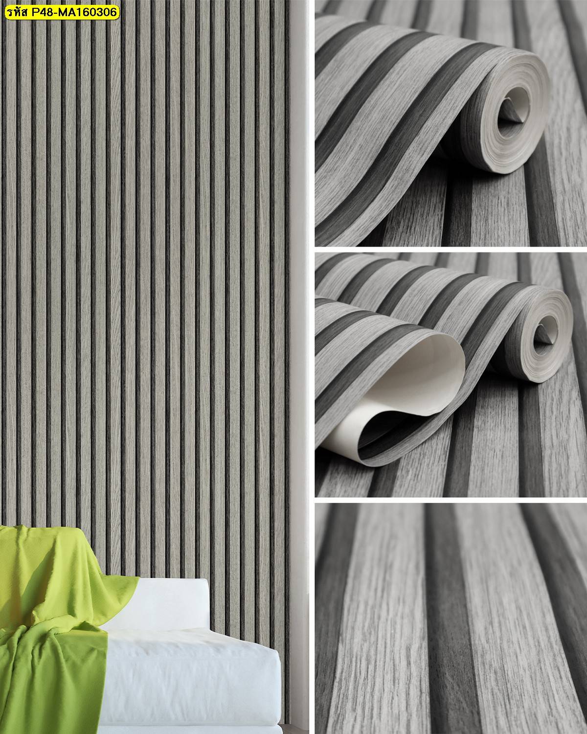 วอลเปเปอร์ติดผนังลายไม้สีเทาดำ รหัส P48-MA160306