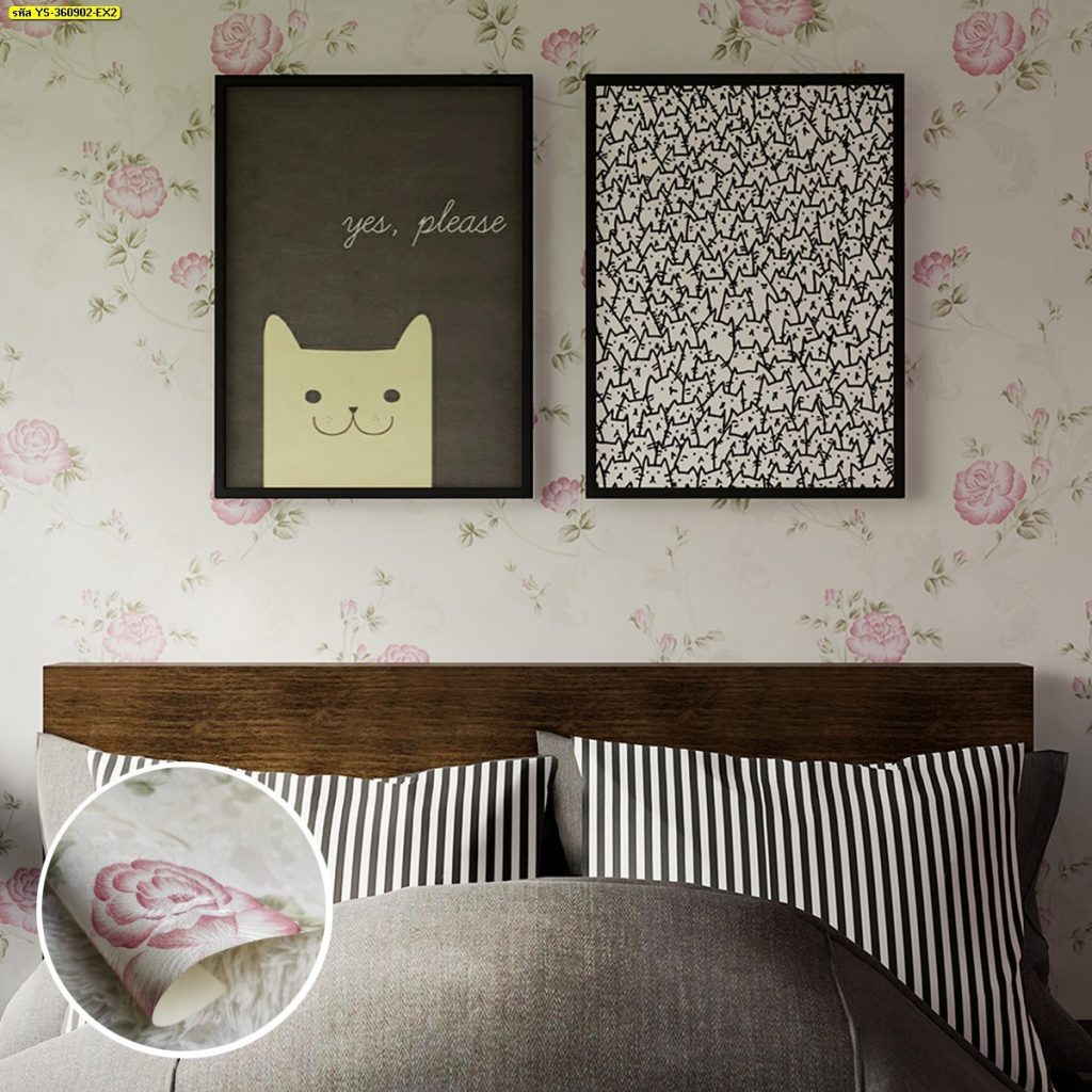 วอลเปเปอร์ติดผนังโทนสีครีม ลายดอกกุหลาบสีชมพู รหัส YS-360902
