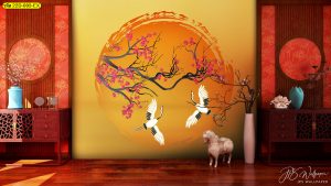 ชื่อสินค้า : วอลเปเปอร์พระจันทร์เต็มดวงและนกกระเรียน