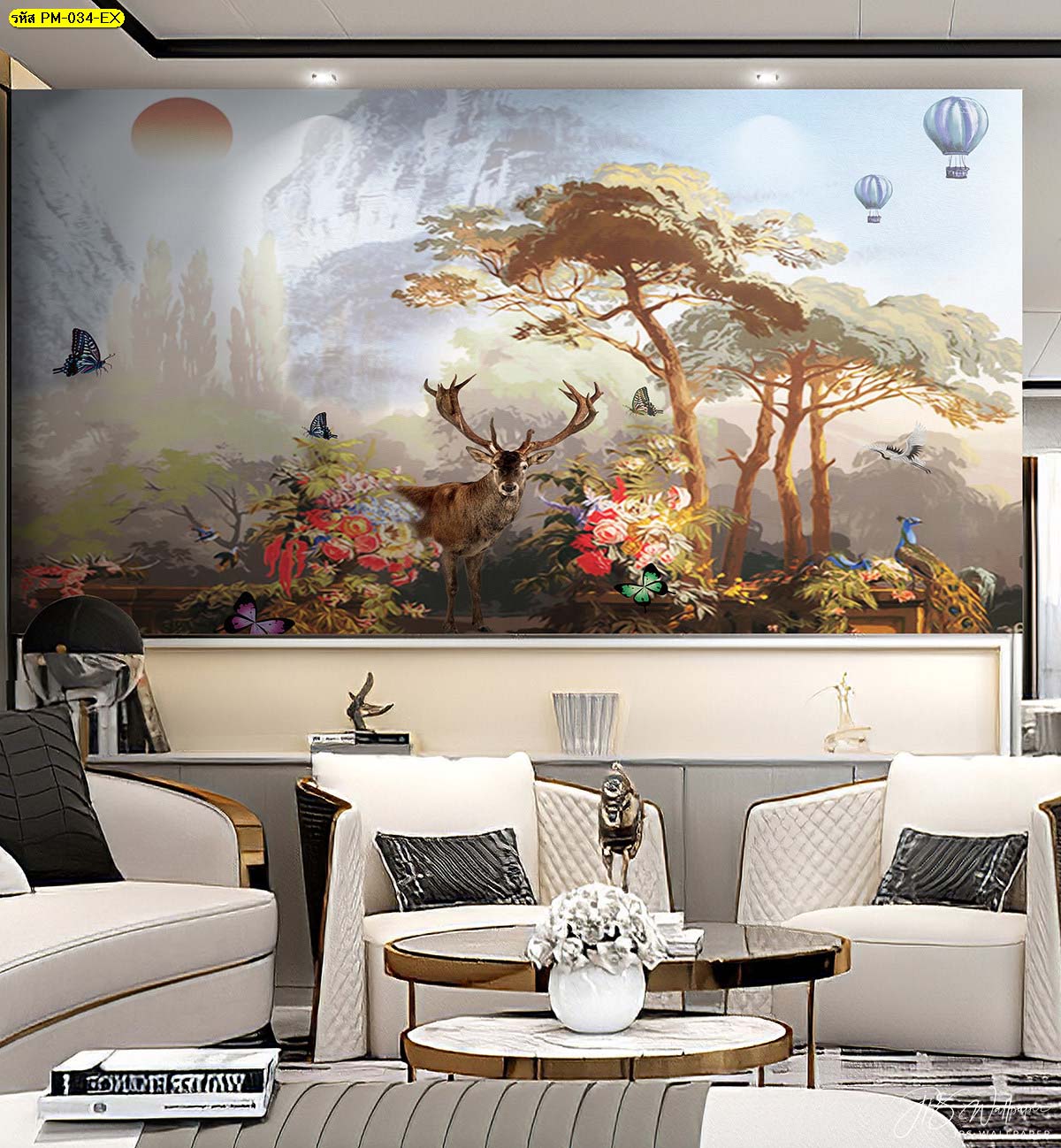 ชื่อสินค้า : วอลเปเปอร์ลายกวางป่าธรรมชาติในสวนดอกไม้พรีเมี่ยม