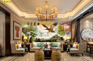 ห้องรับแขกแต่งผนังลายธรรมชาติ เหมาะแก่การพักผ่อนในวันสบายๆ