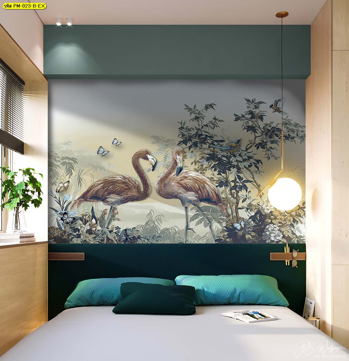 สไตล์การแต่งห้องนอนธรรมชาติลายฟลามิงโก้ในป่า