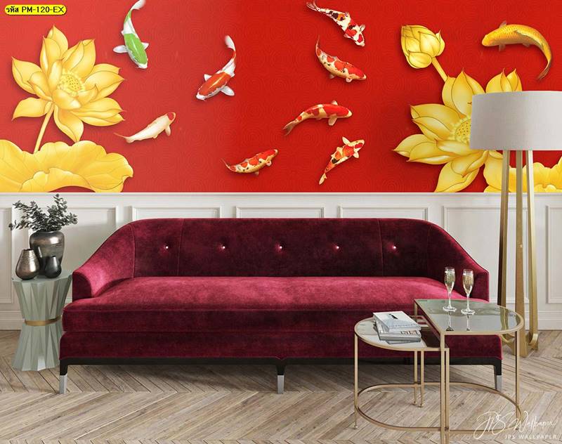 ตกแต่งห้องด้วยภาพปลาคราฟ พื้นหลังสีแดง ให้ร้อนแรงมีพลัง