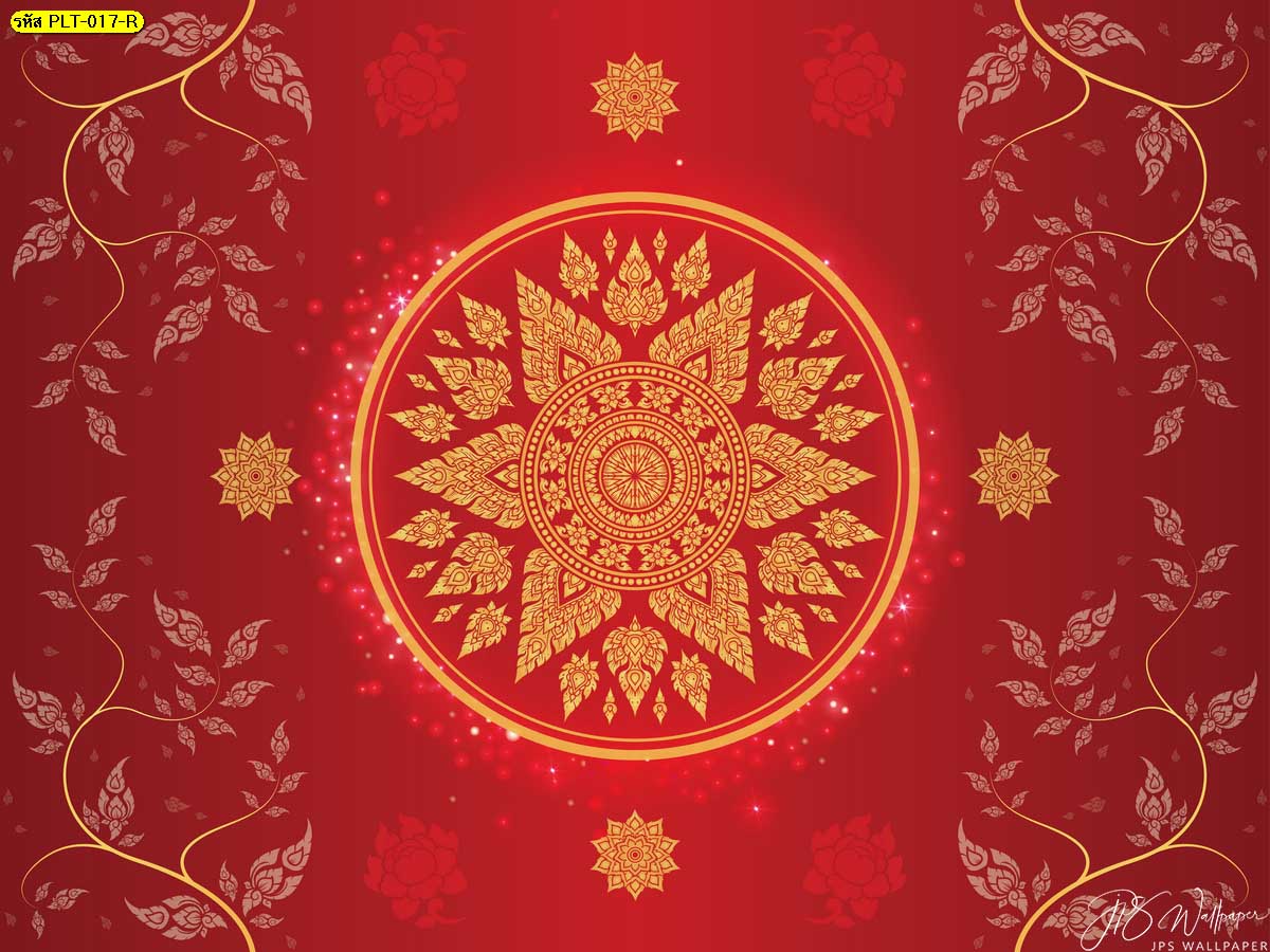วอลเปเปอร์ลายไทยพื้นแดงสุดฮิตที่เหมาะสำหรับการติดตั้งเพดานห้องพระ