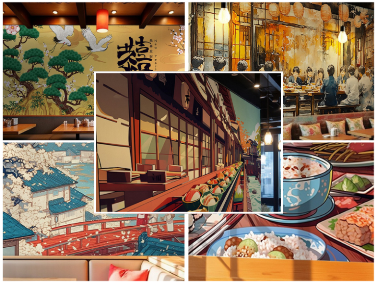 วอลเปเปอร์แคนวาสสั่งพิมพ์สามารถออกแบบให้ตรงกับธีมและคอนเซ็ปต์ของร้านอาหาร ช่วยสร้างบรรยากาศที่สวยงามและเอกลักษณ์เฉพาะตัว ทำให้ลูกค้าจดจำและประทับใจ