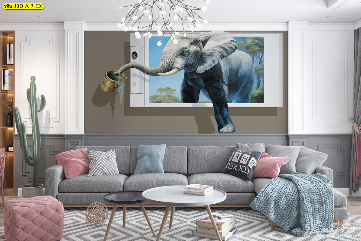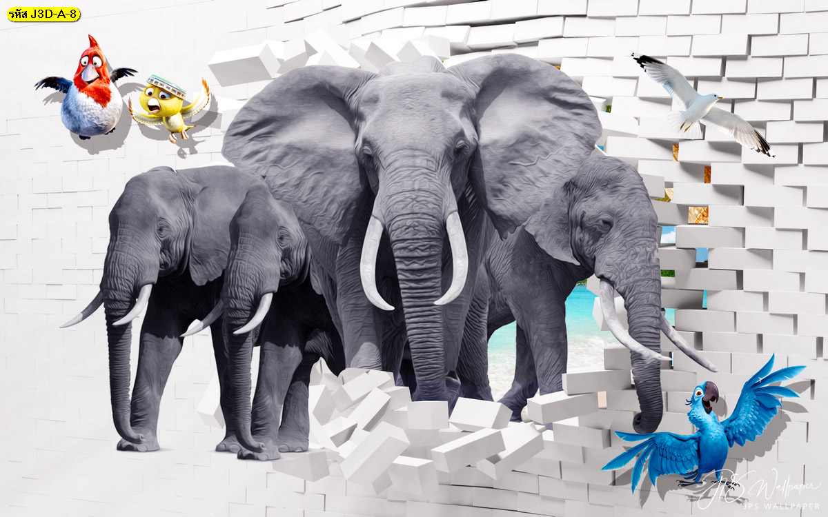 วอลเปเปอร์สามมิติลายช้างและผนังลายอิฐ