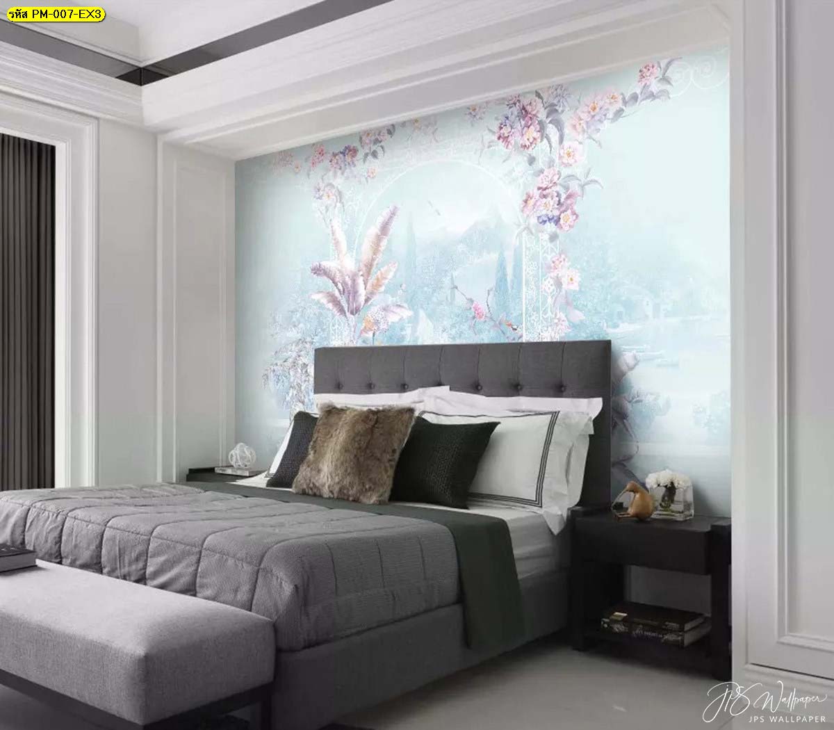 เพิ่มลูกเล่นบนผนังหัวเตียงที่น่าสนใจ ภาพพิมพ์สวนดอกไม้สุดหรู