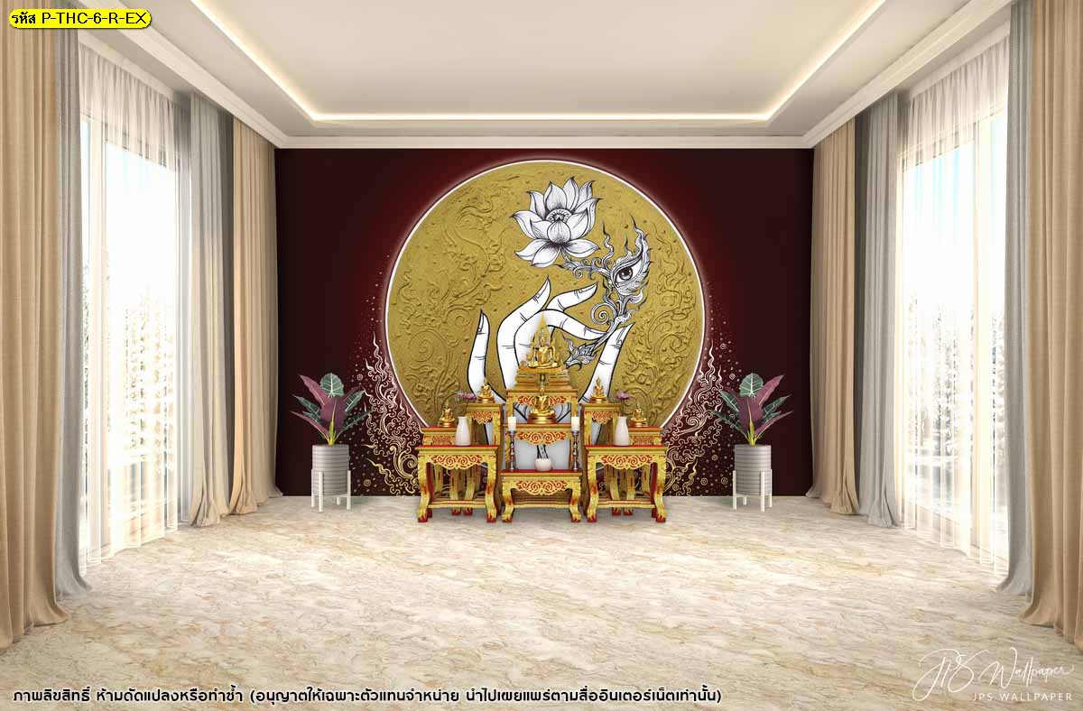 ชื่อสินค้า : วอลเปเปอร์ลายลิขสิทธิ์ ภาพลายไทยดอกบัวบูชา