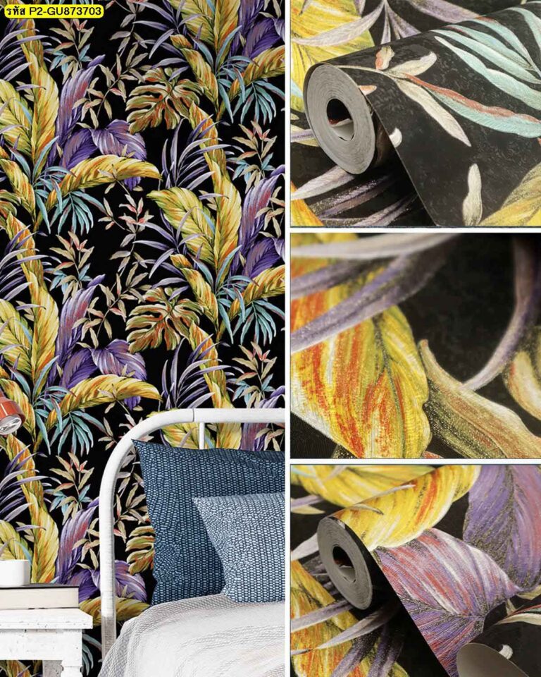วอลเปเปอร์ เล่ม MODERN DESIGN ลวดลายบนเนื้อผ้ามี Texture ของการปั้มนูน สีของลายดอกไม้เมื่อกระทบกับแสงจะเกิดเงาแวววาวตามเฉดสี บนเนื้อวอลเปเปอร์ถูกแต่งด้วยส่วนผสมของ Glitter ทั้งสีเงินและสีทองที่จะช่วยเพิ่มความระยิบระยับให้กับห้องของคุณ